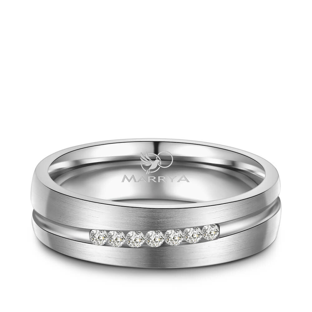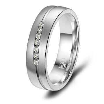 Hochwertiger Damenring aus Edelstahl. Dieser Edelstahlring mit 7 Zirkonia in Kanalfassung ist hochwertig verarbeitet und sitzt durch die Bombierung (an der Ringinnenseite abgerundet) sehr bequem am Finger.