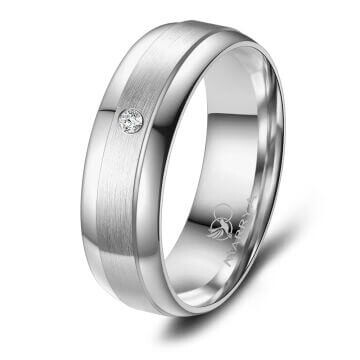 Hochwertiger Damenring aus Edelstahl mit einem Zirkonia veredelt. Dieser Edelstahlring sitzt durch die Bombierung (an der Ringinnenseite abgerundet) sehr bequem am Finger.