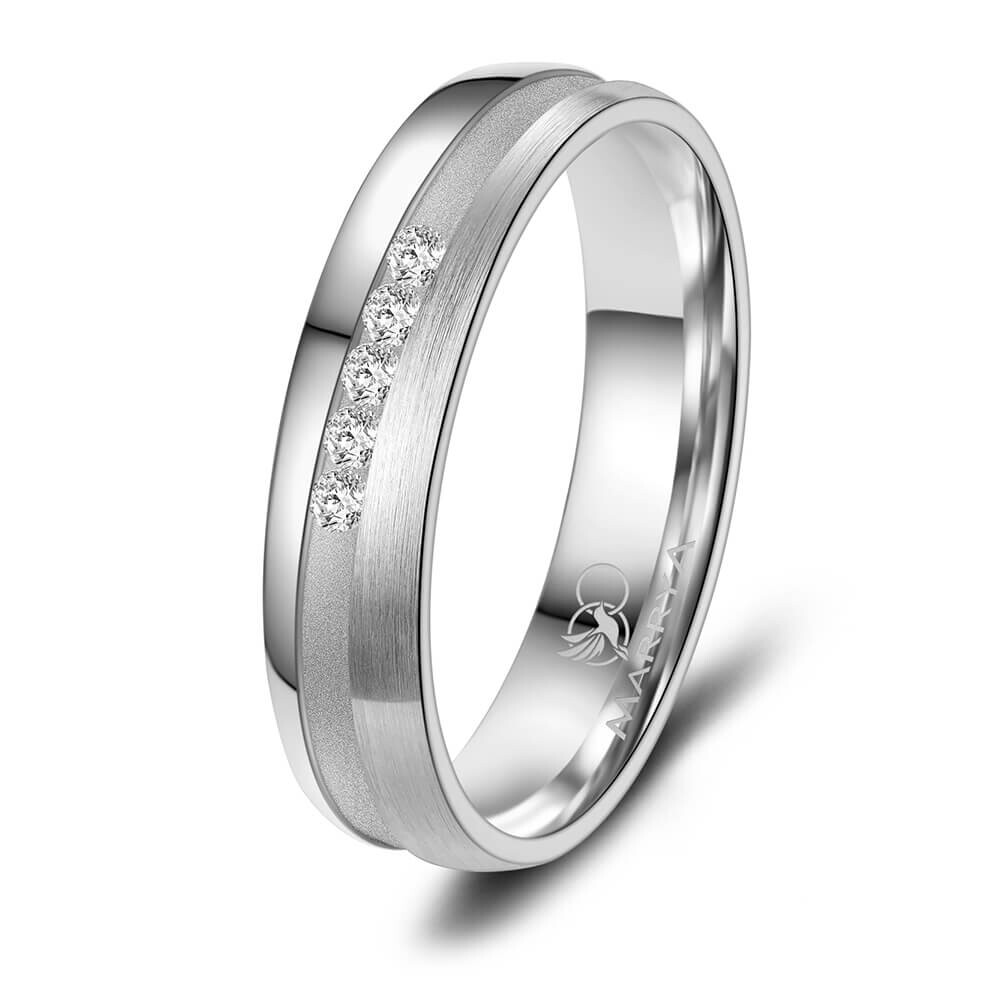 Ein Damenring aus mehrfach rhodiniertem 925er Sterlingsilber mit qualitativ hohem Anlaufschutz. Der Ring ist mit mehreren Zirkonia Steinen veredelt. Er ist hochwertig verarbeitet und sitzt durch die Bombierung (an der Ringinnenseite abgerundet) sehr bequem am Finger.
