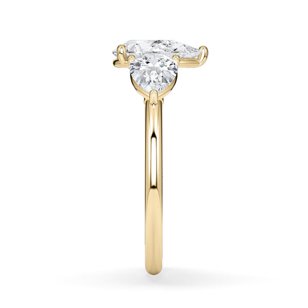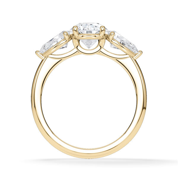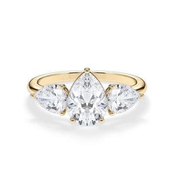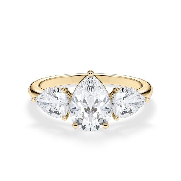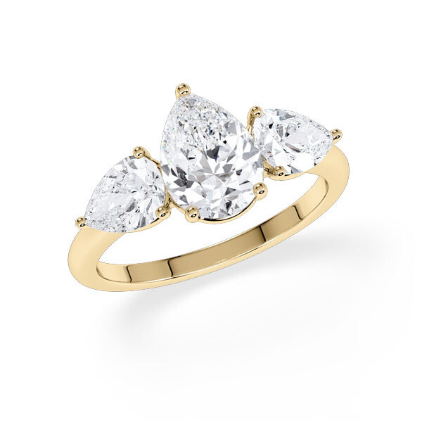 Diamantring Three Stone Lab-Grown Tropfen Pear Gelbgold Rubin RU-1876