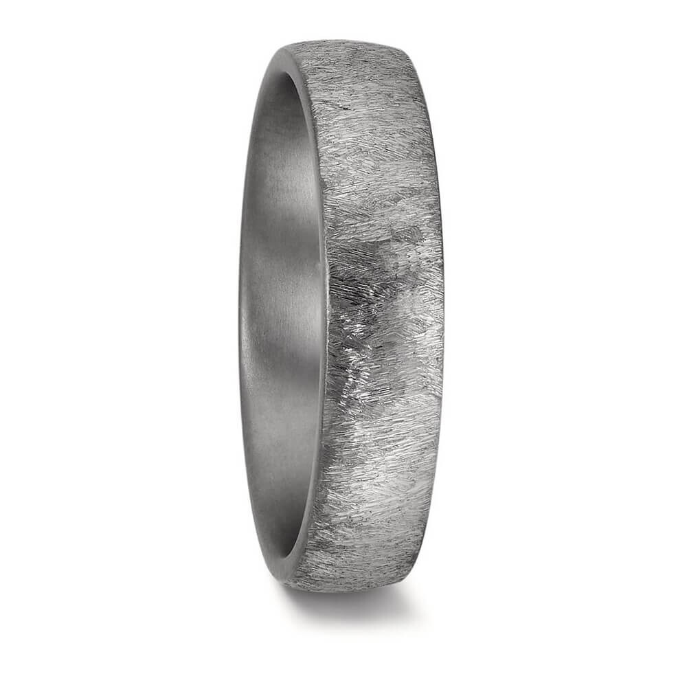 Hochwertige Eheringe aus Tantal mit gebürsteter Oberfläche. Der Damenring ist dabei mit einem funkelnden blauen Diamanten (ges. 0,104 ct.) besetzt. Beide Ringe, welche auch als Partnerringe getragen werden, sind innen bombiert und außen gerade. Das sorgt für ein angenehmen Tragegefühl. Tantal ist ein sehr kratzfestes Material welches zudem äußerst unempfindlich gegenüber Tragespuren ist. Gern gravieren wir diese Ringe mit Ihrem Wunschtext.