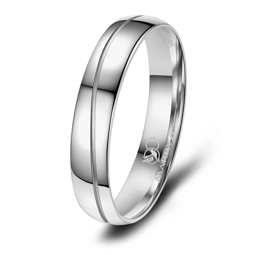 Ein formschöner und hochwertig verarbeiteter Ring aus Edelstahl ohne Steinbesatz. Er sitzt durch die Bombierung (an der Ringinnenseite abgerundet) sehr bequem am Finger. Die Oberfläche des an den Seiten abgerundeten Rings ist auf hochglanz poliert, die Fuge in sandmatt gehalten.