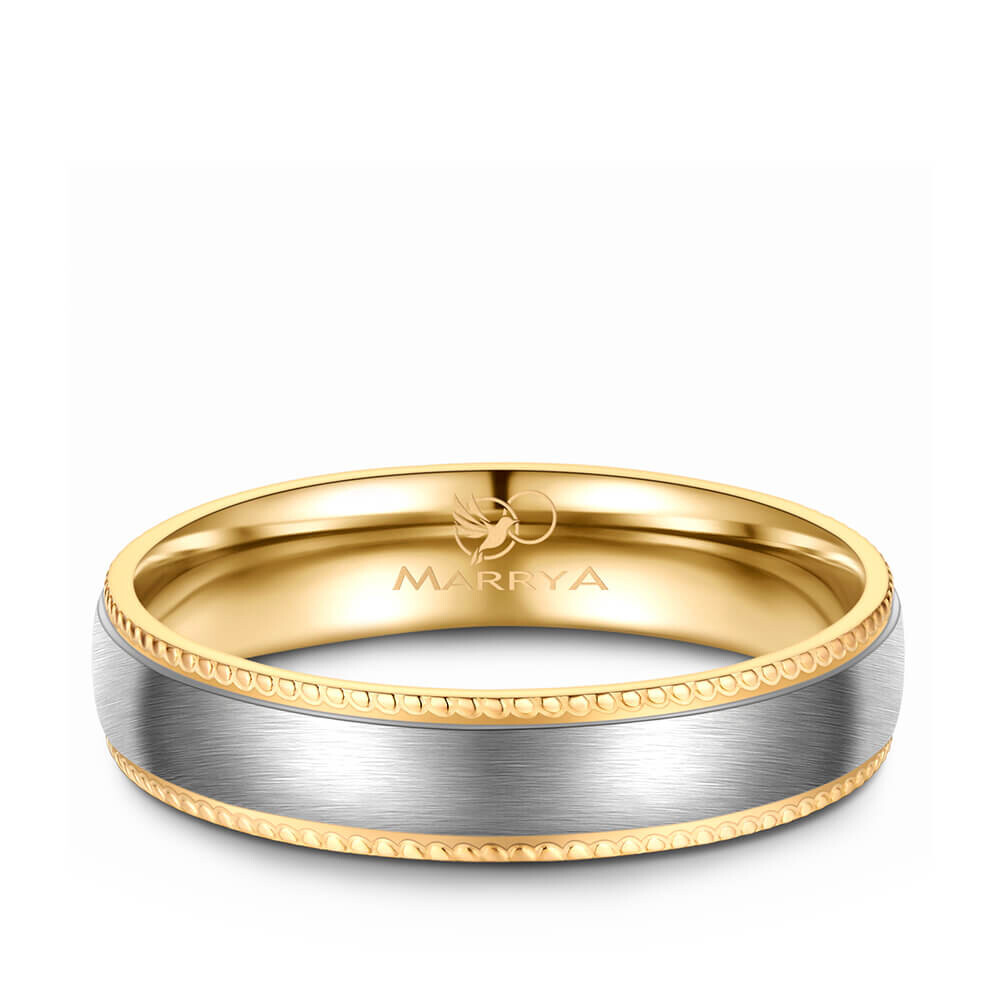 Ein wunderschöner Titanring mit Gelbgoldplattierung. Titan ist für seine vergleichsweise hohe Kratzfestigkeit und Stabilität bekannt, trotzdem ist es relativ leicht. Die Titan-Oberfläche des Rings ist matt gebürstet während die polierten Ränder mit Perlfugen verziert sind. Der Ring ist von innen abgerundet (bombiert). Dies sorgt für ein besonders angenehmen Tragekomfort am Finger.