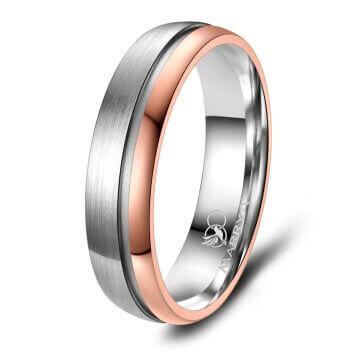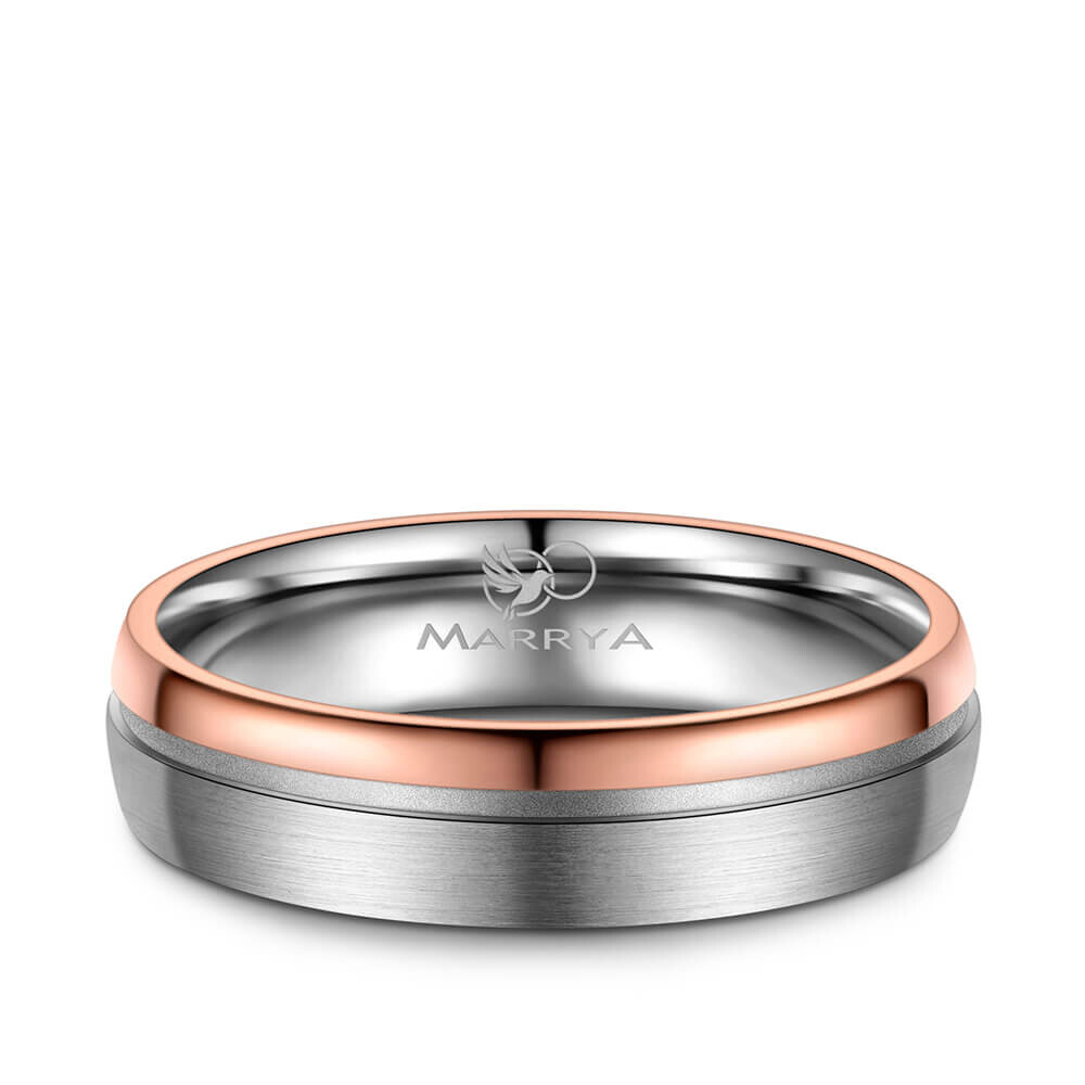 Mehrfarbiger Herrenring aus Titan mit 14K IP Beschichtung in Rosé ohne Steinbesatz. Dieser Titanring ist hochwertig verarbeitet und sitzt durch die Bombierung (an der Ringinnenseite abgerundet) sehr bequem am Finger.