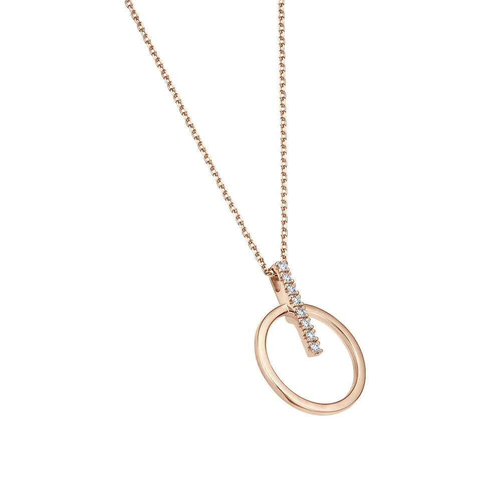 Eine wunderschöne Halskette mit dem Anhänger Fantasie aus Roségold. Der Anhänger ist mit mehreren funkelnden Brillanten veredelt.