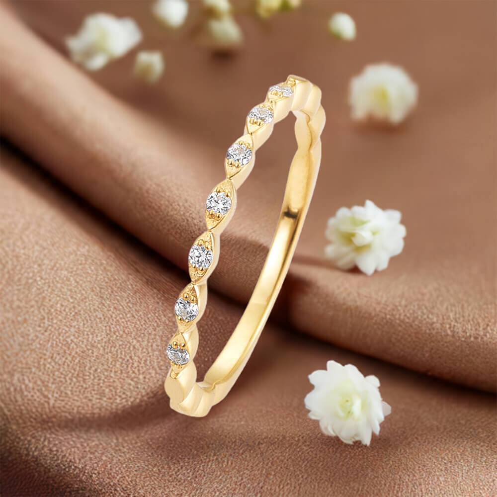 Hochwertiger, sehr charmanter Ring mit mehreren leuchtenden Diamanten als besonderes Highlight. Das warme Gelbgold mit mattierter Oberfläche sorgt für eine edle Ausstrahlung. Der Ring ist im angesagten Vintage-Stil gestaltet und besticht durch seine elegante und zeitlose Optik. Als Vorsteckring oder Beisteckring getragen, verleiht er jedem Outfit einen besonderen Wow-Effekt. Lass Dich von seinem einzigartigen Charme verzaubern und trage ein Stück Vintage-Stil an Deinem Finger.