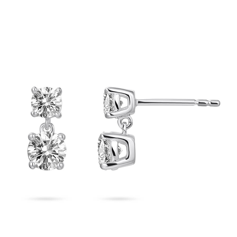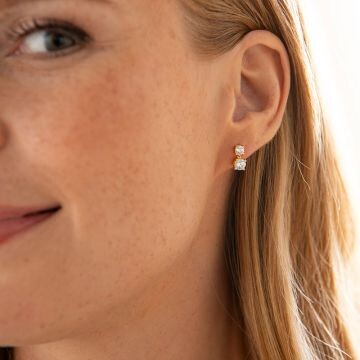 Schöne Ohrstecker mit je 2 weißen Zirkonia. Die Stecker sind aus rhodiniertem 925er Silber Gold plattiert gefertigt.
