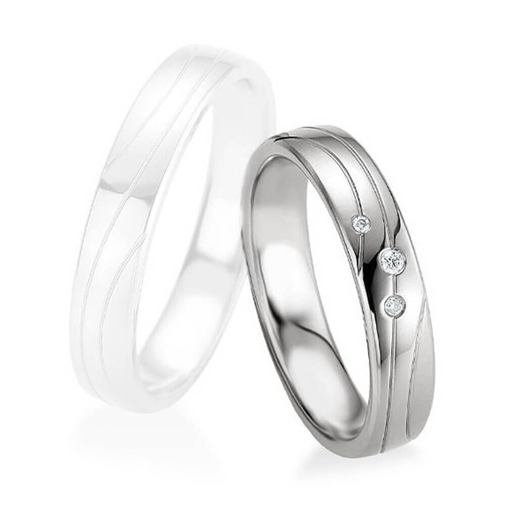 Ein wunderschöner Partnerring aus platiniertem 925er Silber und mehreren echten Diamanten. Dieser Ring aus der Kollektion "Silver with Diamonds" ist mit tollen Fugen versehen. Für einen optimalen Tragekomfort sind die Ringe innen bombiert (abgerundet).