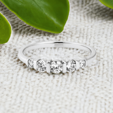 Wunderschöner Ring aus 925er Silber rhodiniert mit polierter Oberfläche - modisch und schlicht zugleich. Mit fünf sicher gehaltenen Zirkonia-Steinen. Ein hochwertig verarbeiteter Ring aus Sterlingsilber zum selber schenken oder als Geschenk zu jedem Anlass.