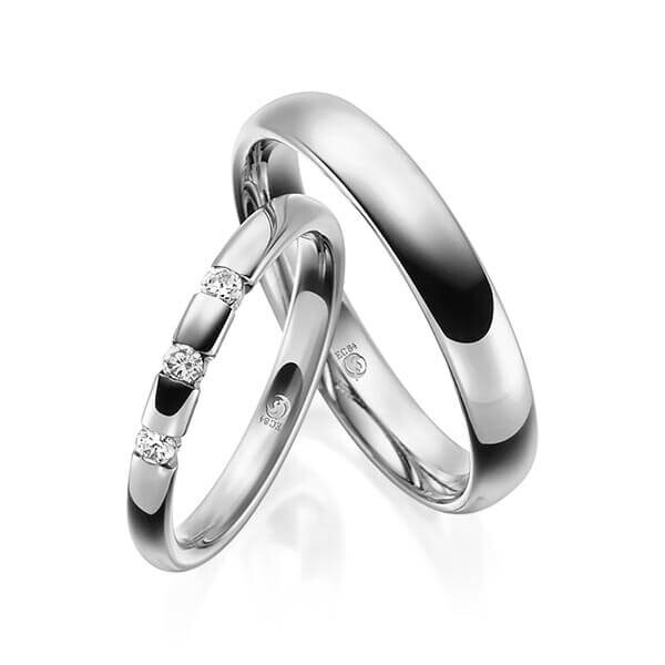 Paar Trauringe / Eheringe von Rubin Außen und innen gerundet in Graugold dunkel 375/-. Steinbesatz mit zus. 0,12 ct. tw, si - feines weiß mit kleinen Einschlüssen.