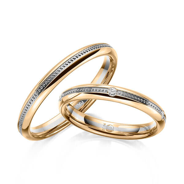 Paar Trauringe / Eheringe Roségold 585/- Graugold 585/- zus. 0,100 ct, tw, si - RU-1620-16