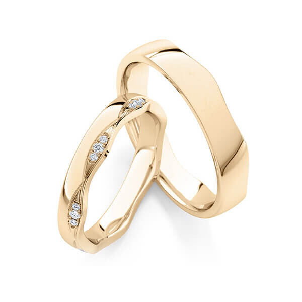 Paar Trauringe / Eheringe von Rubin Außen und innen leicht gerundet, gerade Kanten in Roségold 585/-. Steinbesatz mit zus. 0,14 ct. tw, si - feines weiß mit kleinen Einschlüssen.
