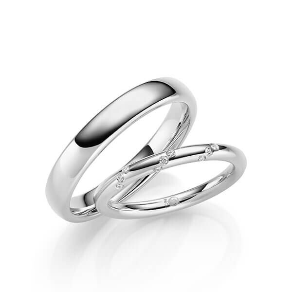 Paar Trauringe / Eheringe Palladium 585/- zus. 0,060 ct, tw, si - RU-1703-6