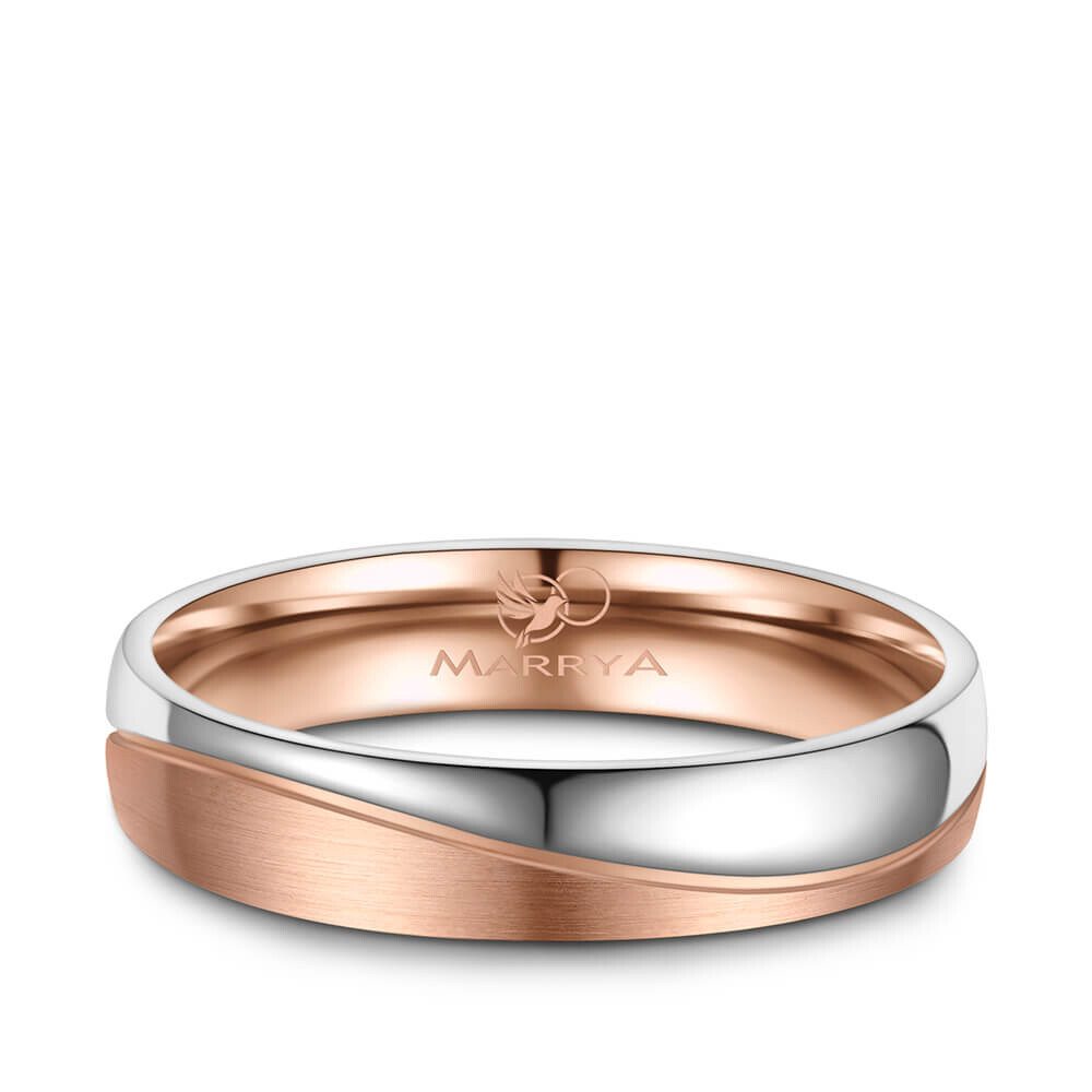 Hochwertiger Bicolor Ring aus Edelstahl ohne Steinbesatz. Ein Teil des Rings ist Edelstahl mit einer erstklassigen 14K IP Beschichtung in Roségold matt versehen, der andere Teil in Edelstahl glänzend. Getrennt sind beide Bereiche durch eine umlaufende Fuge. Dieses wunderschöne Edelstahlmodell ist in Top-Qualität verarbeitet und sitzt durch seine Bombierung (an der Ringinnenseite abgerundet) super bequem am Finger.