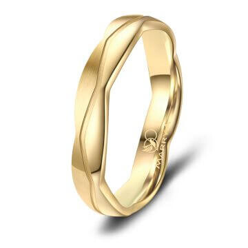 Hochwertige Trauringe und Partnerringe aus Titan Gelbgold plattiert. Der Damenring ist mit mehreren eingeriebenen Zirkonia veredelt. Die Oberflächen dieser Ringe sind teil längsmatt, teils poliert gehalten. Die Innenseiten sind leicht bombiert, was für angenehmen Tragekomfort sorgt.