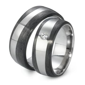 Unglaublich schöne Ringe aus Titan-Carbon. Auf den Titanring sind zwei Carbonscheiben gesetzt, so das eine Titan-Elypse entsteht. Der Damenring hat einen Diamanten in 0,05 Carat in w/si Schmuckqualität.