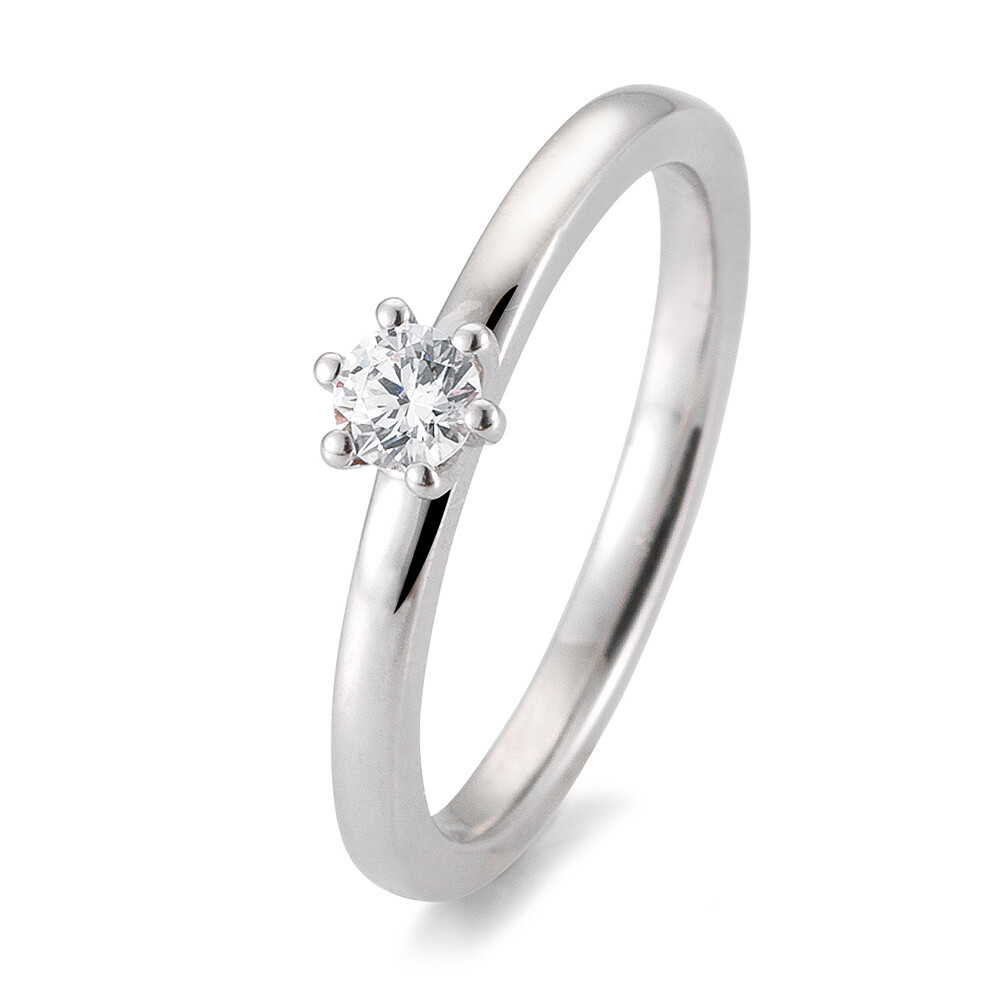 Der Verlobungsring mit 6er Krappe von Breuning überzeugt mit seinem klassischen Design in feinem Weißgold. Darüber hinaus ist er mit einem strahlendem Solitär verdelt.