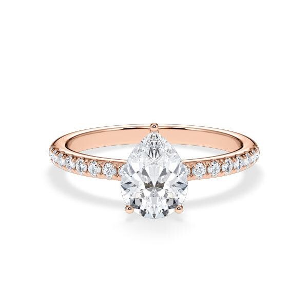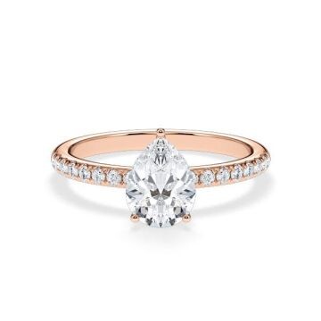 Entdecken Sie den exquisiten Verlobungsring Veiled Halo aus Rotgold mit einem Lab-Grown Diamant im Tropfen-Schliff (Pear) als Center-Stein. Dieser einzigartige Ring vereint zeitlose Eleganz mit modernem Design und ist die perfekte Wahl für den besonderen Moment. Der Hauptstein, ein atemberaubender Lab-Grown Tropfen-Diamant, wird von einem versteckten Halo aus echten Diamanten umgeben, die dem Ring zusätzlichen Glanz und Brillanz verleihen.