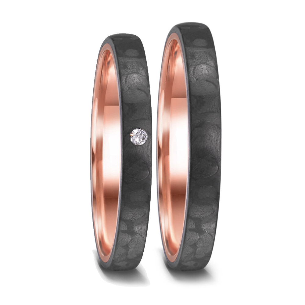Volcanic Love Eheringe aus Rotgold 585 & Carbon TeNo 52658